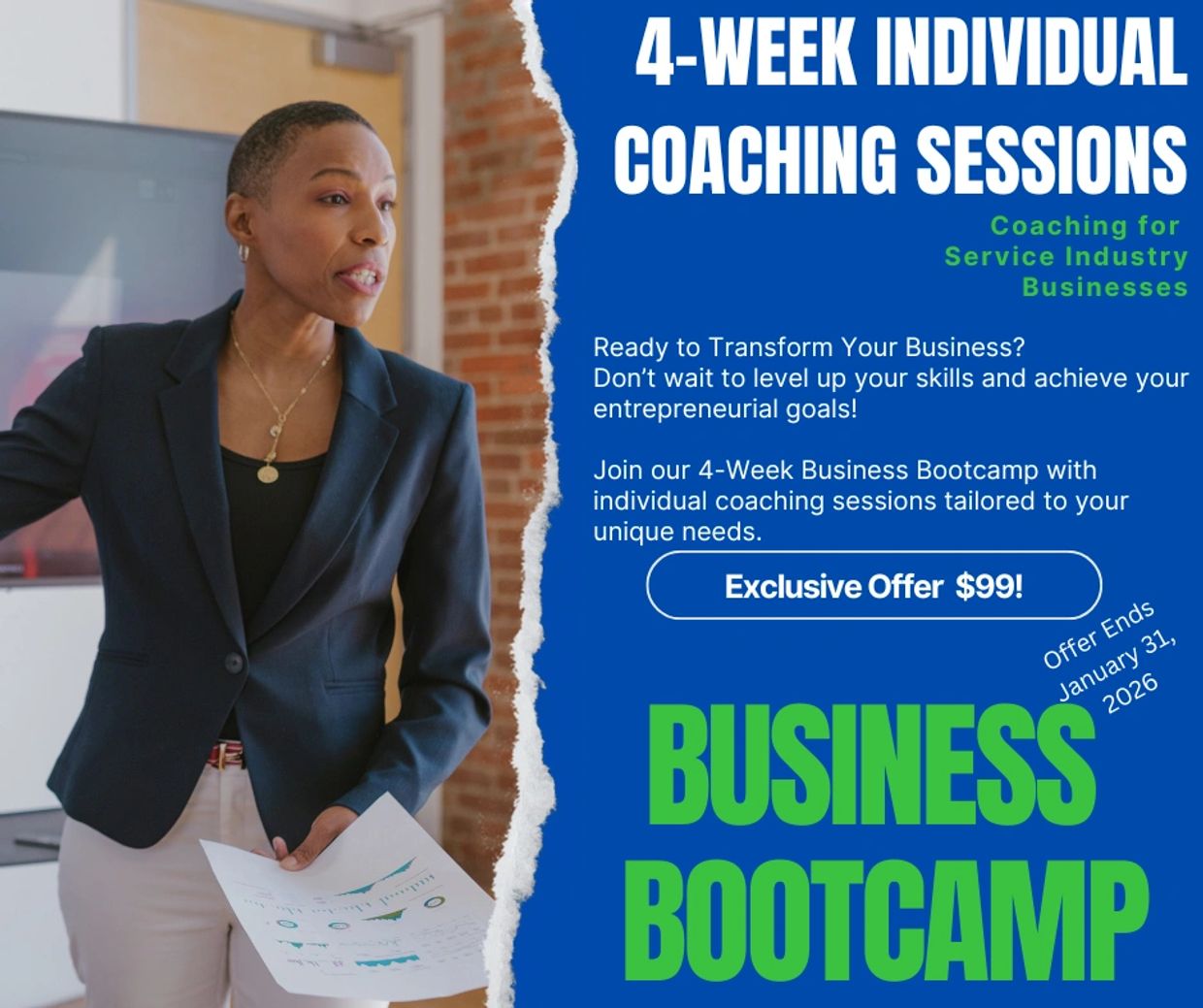 Don’t wait to level up your skills and achieve your entrepreneurial goals! Join our 4-Week Business Bootcamp with individual coaching sessions